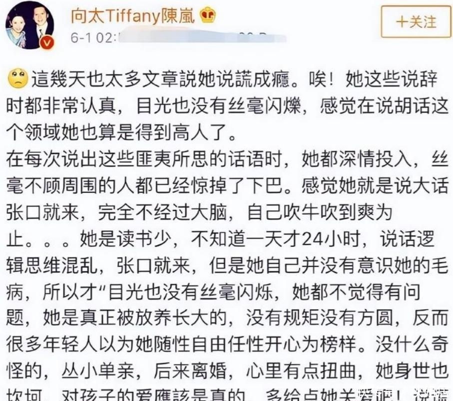 向太出于母性同情一度为她发声,却未料自己的善意被当作攻击他人的利器。